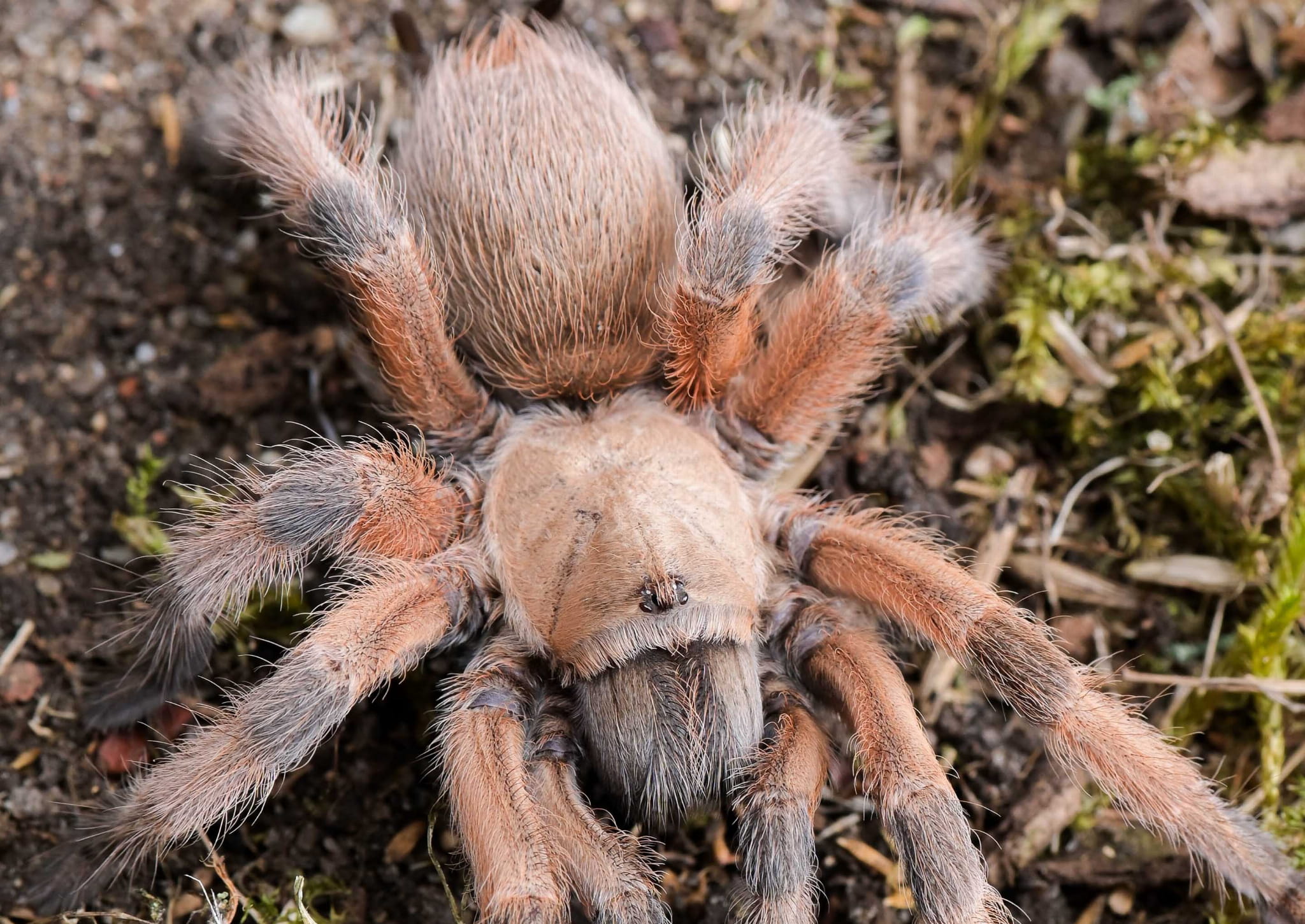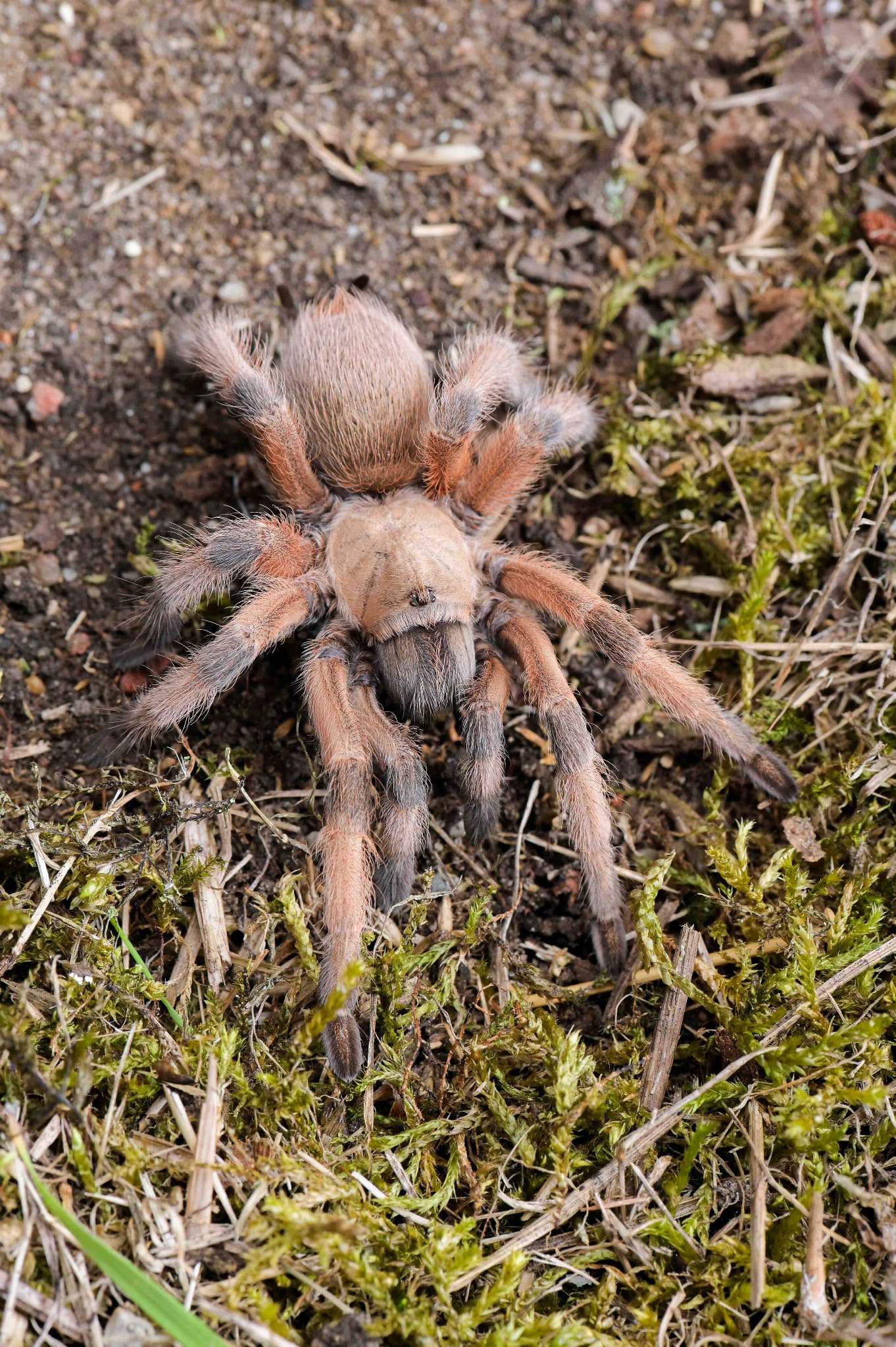 Południowy Teksas i północny Meksyk – suche, kamieniste tereny na pograniczu dwóch krajów, gdzie pustynna roślinność przechodzi w kolczaste zarośla. Aphonopelma moderatum to ptasznik o spokojnej urodzie – ciemnobrązowe ciało z delikatnym rudawym nalotem na karapaksie, które w świetle nabiera ciepłych, czekoladowych tonów. Nie krzyczy kolorem, ale ma w sobie ten cichy urok, który docenia się z czasem.